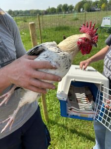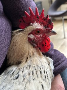 Ik ben Jack. Samen met Lewis en Charlie ben ik achtergelaten bij een verlaten boerderij. Ineens werden we gevangen en dat was enorm spannend. Gelukkig kwamen we op een fijne plek terecht, waar veel andere hanen waren. Ik heb er wel even voor gezorgd dat ze weten dat er met mij niet te sollen valt. Ondanks dat ik een pijnlijke poot had! Toen de mensen dat merkten, smeerden ze mijn poot in en moest er verband omheen. Niet lang nadat ik bij Dierbaar terecht kwam, werd ik geadopteerd door lieve mensen. Nu heet ik Ozzy en heb ik 5 lieve hennen om voor te zorgen. Ik ben een gelukkige haan!