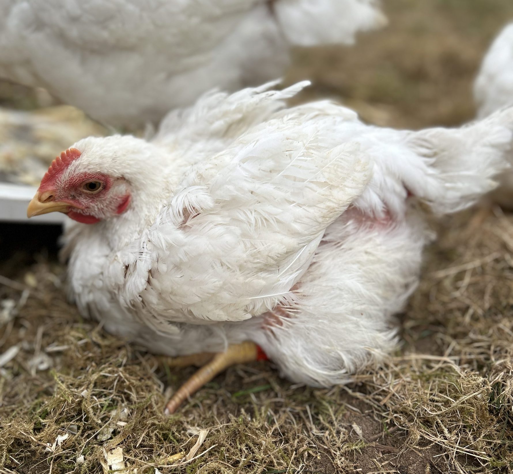 Hallo, ik ben Karel. De naam is mij gegeven door mijn lieve eerste sponsor Suzi. Ik ben geboren als vleeskuiken, op 1 maart 2025. Toen ik en mijn vriendjes heel klein waren, kwamen we ergens terecht waar het heel koud was. Sommige vriendjes gingen slapen en werden koud. Ze werden niet meer wakker. Ik kwam met de anderen terecht op een warme plek met lieve mensen en waar veel lekker eten was. Daar groeiden wij snel. Daarna ben ik met 9 vriendjes verhuisd naar een andere mooie plek, met zacht gras en zand om te stofbaden. Ik kan alleen niet zo goed stofbaden, omdat mijn pootjes pijn doen. Daarom loop ik niet graag en lig ik veel. Ik krijg druppels en brokjes in mijn snavel, dan heb ik minder pijn. Maar ik geniet ervan om lekker te eten en dichtbij mijn vrienden te zijn.